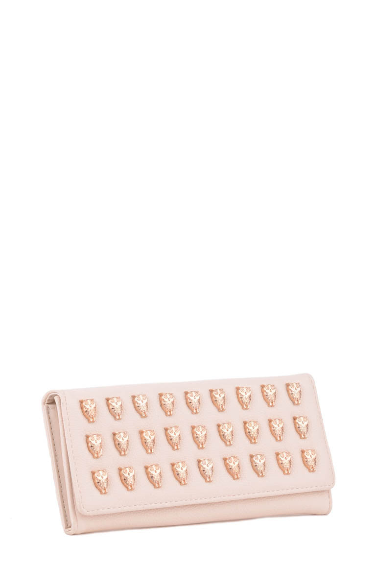 Owl Studded Faux Leather Purse. Key features include compartments for cards and notes and a zip pouch perfect for keeping your coins.