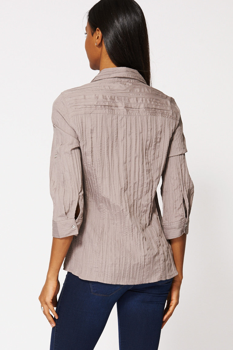 Ruffled Loose Fitted Shirt Key Features Include: - Front Button Fastening - Two Chest Button Up Pockets - Long Sleeves - Rounded Ruffled Material Material: - 100% Polyester Measurements: - Model is 5' 7" and wears a size UK10 - Chest across one side approx. 46cm - Length from shoulder to hem 60.5cm